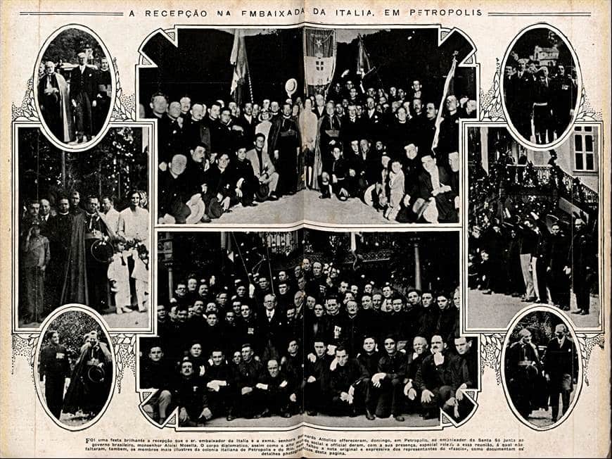 Em 1929, os italianos iriam promover uma festa à fantasia em sua embaixada, também em benefício das obras da catedral. E, ainda naquele ano, houve no mesmo local uma recepção à qual “compareceram os membros mais ilustres da colônia italiana de Petrópolis e do Rio”, bem como “representantes do fascio”, segundo a imprensa da época. Uma imagem do evento mostra um aspecto singular: dezenas de homens, reunidos para a foto, quase todos usando camisas pretas – o “uniforme” fascista.